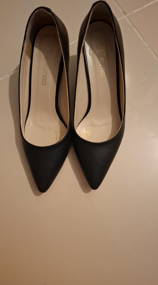 Siyah stiletto topuklu, kauçuk malzemeden yapılmış minimalist tasarım. Ofis için uygun, modern klasik ve zahmetsiz şıklık sunar. Marka: UTIGO.