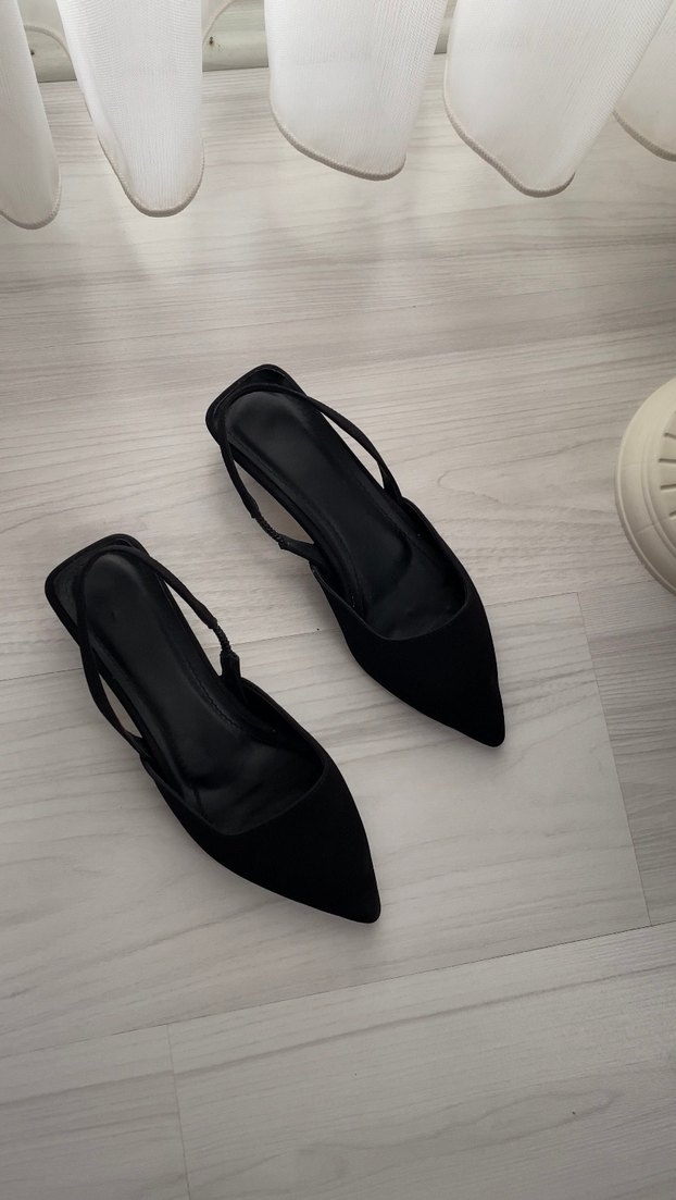 Siyah, lastik malzemeden yapılmış stiletto topuklu, minimalist ve desen içermeyen kadın klasik ayakkabı. Günlük kullanıma uygun, zahmetsiz şıklık sunar.