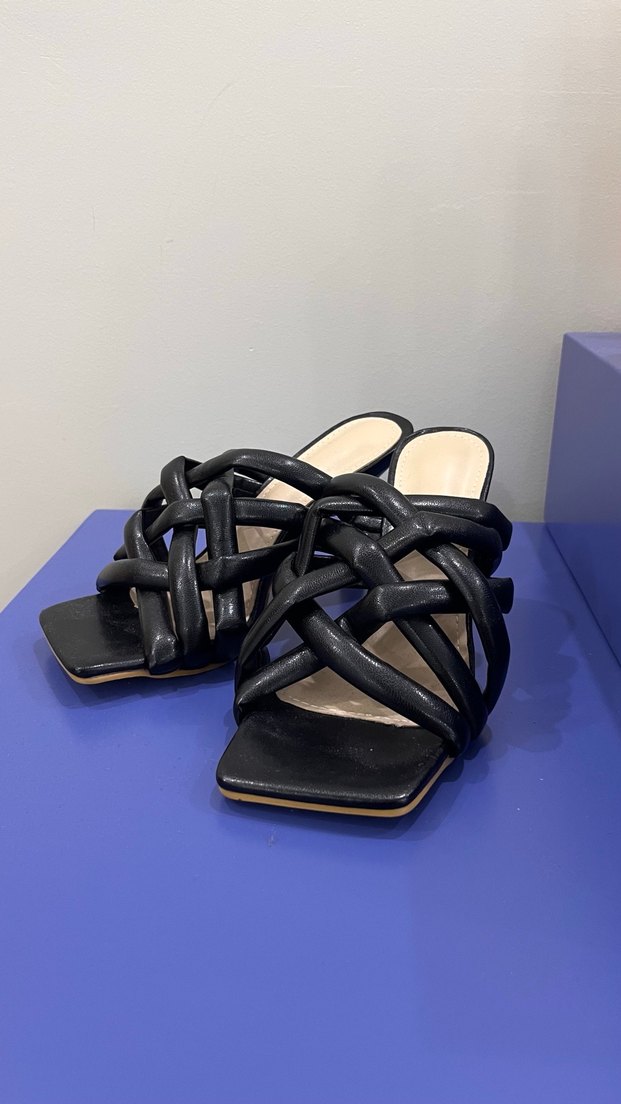 Siyah stiletto topuklu kadın terlikler, tokalı tasarımı ve yılan derisi desenleriyle romantik akşamlar için uygundur. Kauçuk malzemeden, çağdaş tarzda. Defosu yoktur. Rahat ve tutucu terliktir ayakta kaymaz. Örgü kısımları acıtmaz.
