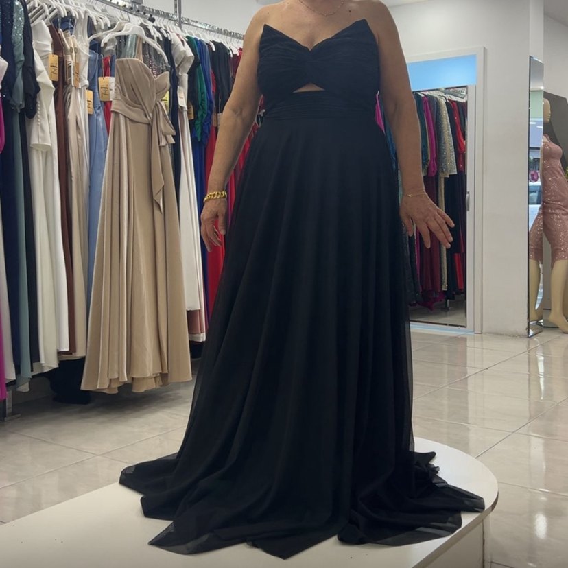 Bu siyah abiye, straplez yaka ve drapeli tasarımıyla cesur gotik tarzı yansıtıyor. Uzun boyu ve ince askılarıyla şık bir görünüm sunar. Üzerine askı siktirdik ince ama kolaylıkla sökülebilir yine. Hiç kullanılmadı daha