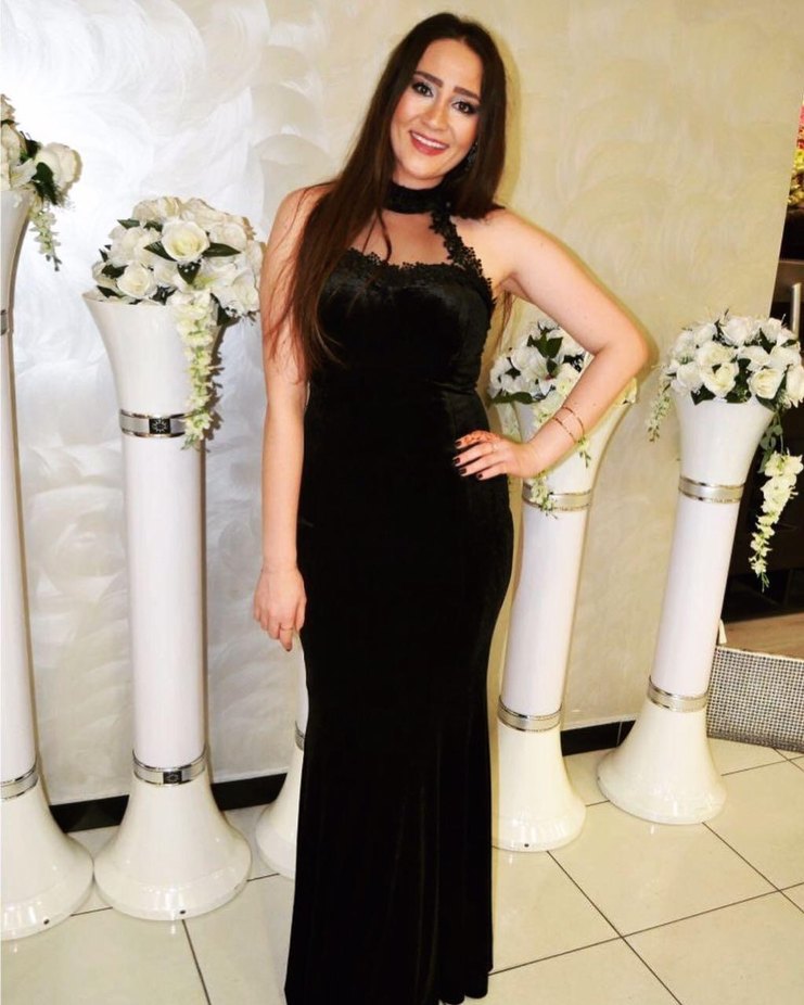 siyah uzun dantel detaylı elbise 36/38 beden uyumlu