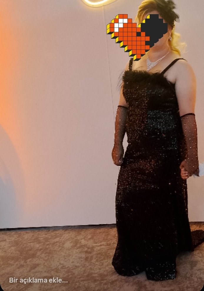 Siyah, straplez, drapeli ve vücuda oturan bu midi abiye elbise, gotik ve avangart tarz için uygundur. İnce askılı ve sade desensizdir.