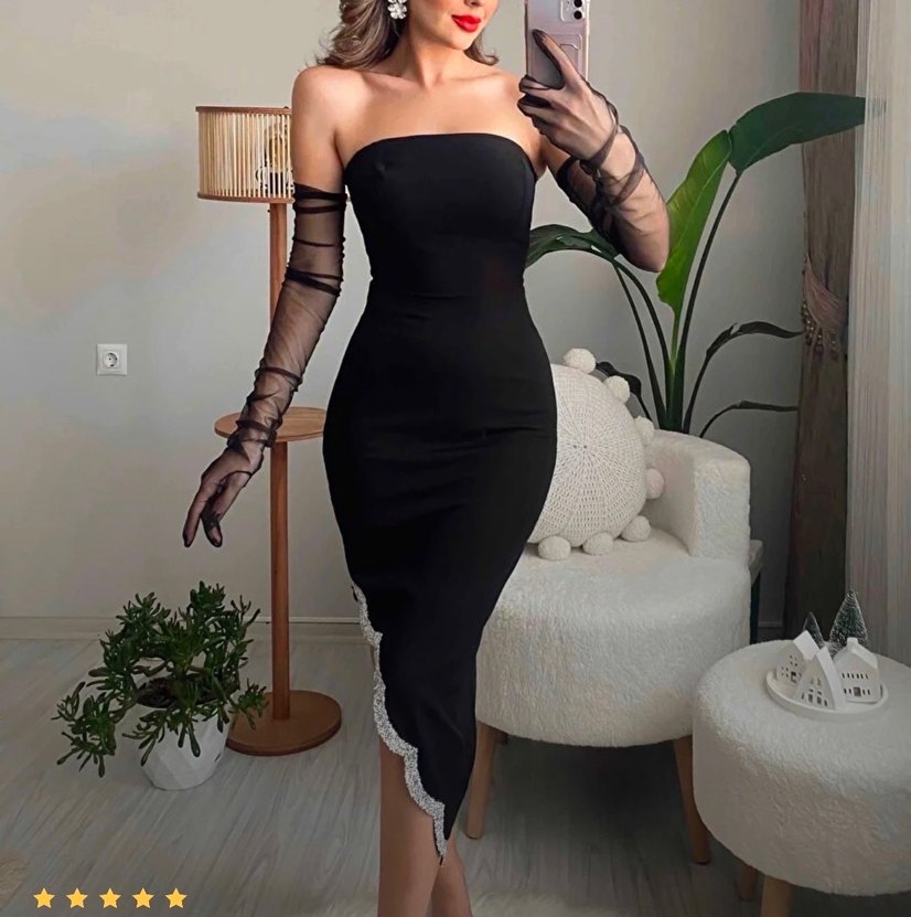 Siyah Straplez Elbise