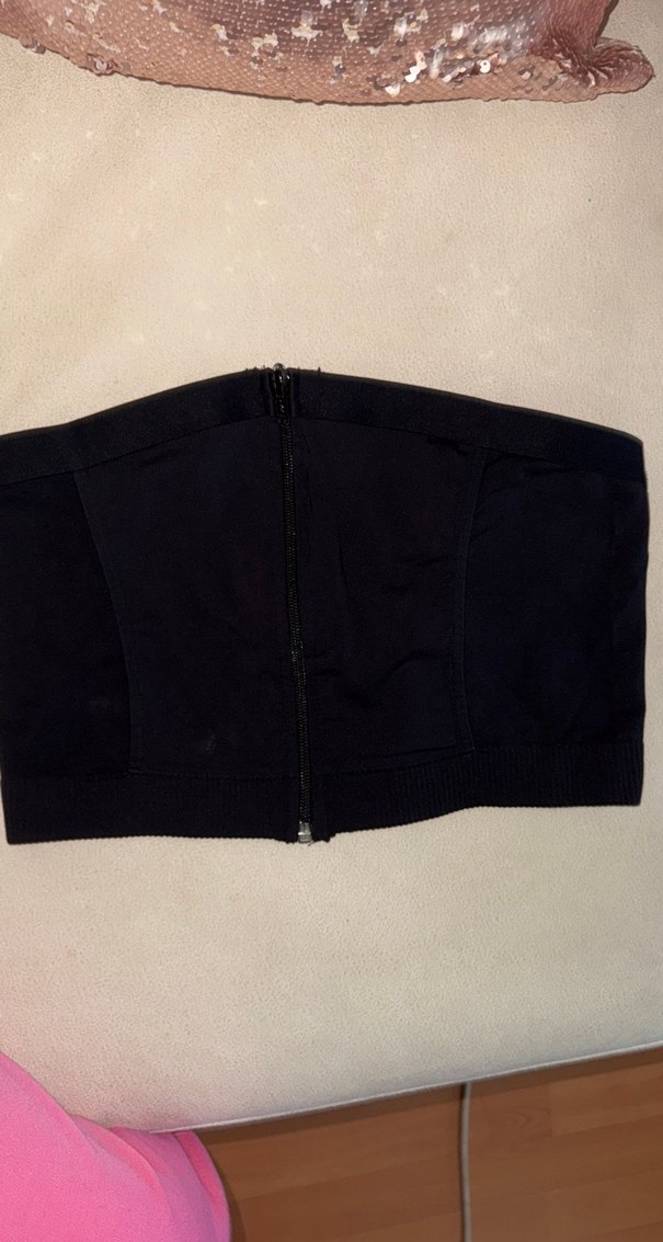 Siyah Straplez Fermuarlı crop