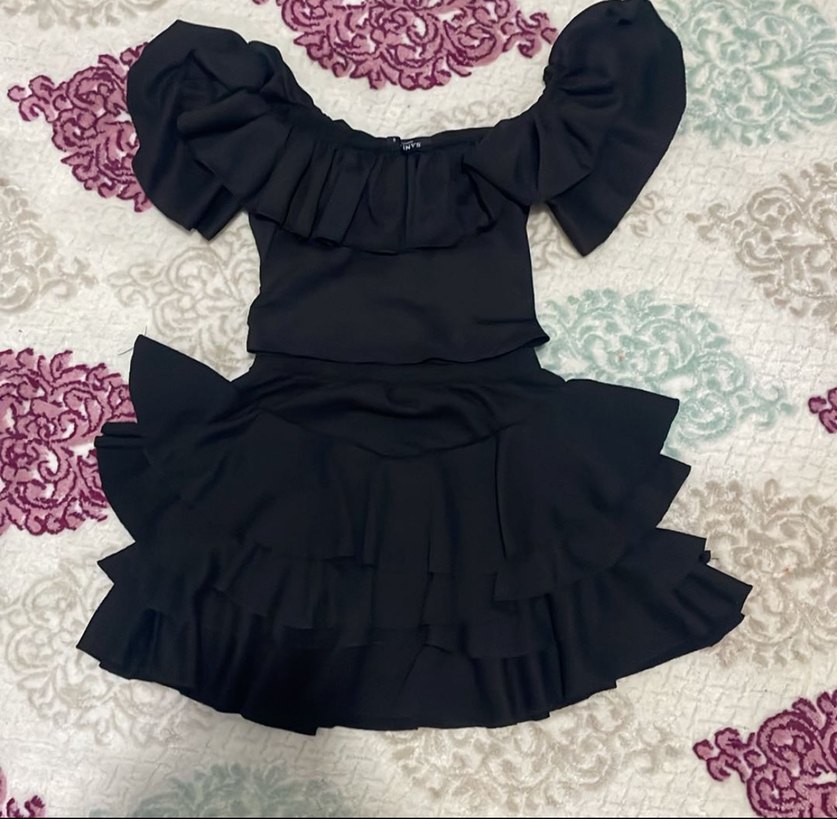 Siyah Straplez Fırfırlı etek