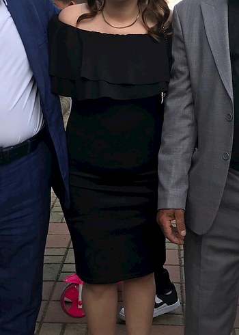 Siyah Straplez Fırfırlı Midi Elbise