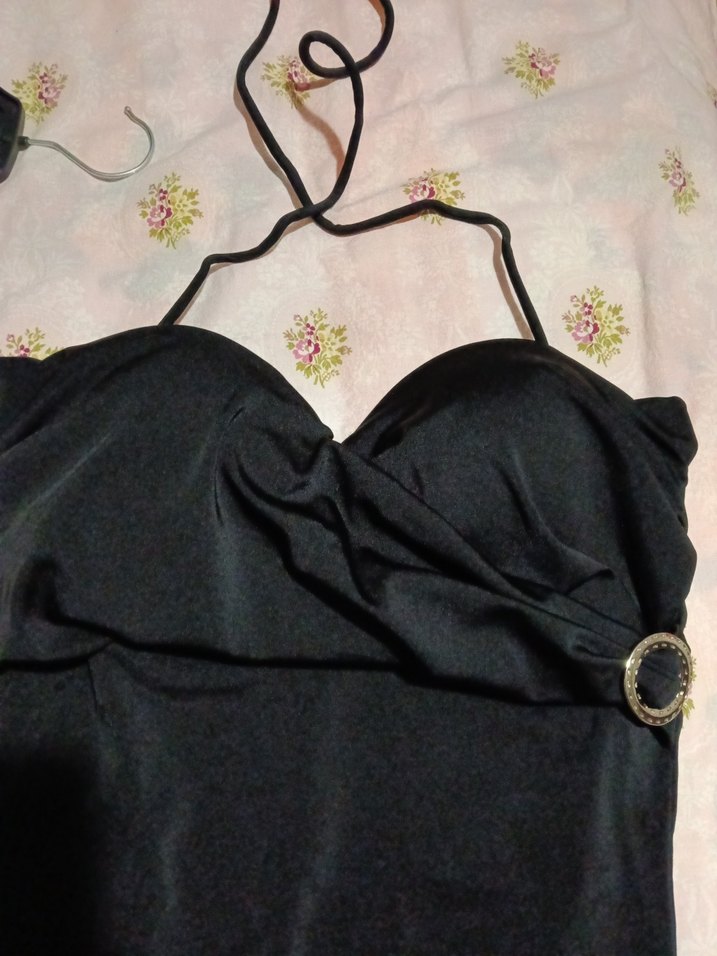 Siyah, straplezı, belinde tokalı detaylı, vücuda oturan mayo