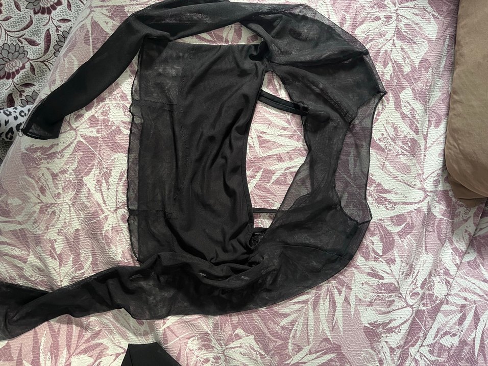 Siyah straplez yaka ve drapeli, askılı kolları olan, sentetik kumaştan yapılmış fit kesim gotik midi bluz.