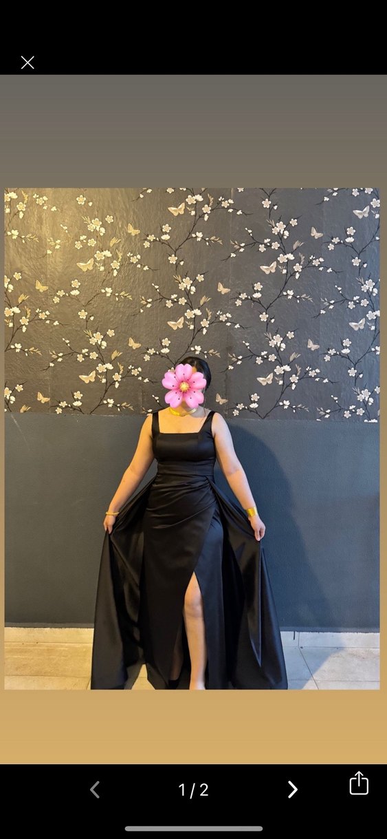 Siyah straplez, drapeli, çiçek desenli uzun abiye elbise. İnce askılı ve fit kesim, gotik ve şık bir görünüm sunar. 1 kere giyildi
