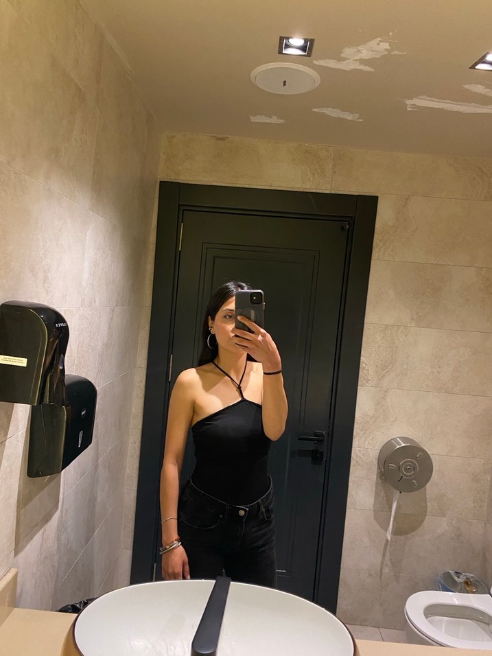 Siyah straplez, ince askılı, midi boy ve vücuda oturan bustiyer. İpeksi kumaştan, sade ve şık tasarım, günlük kullanıma uygun.