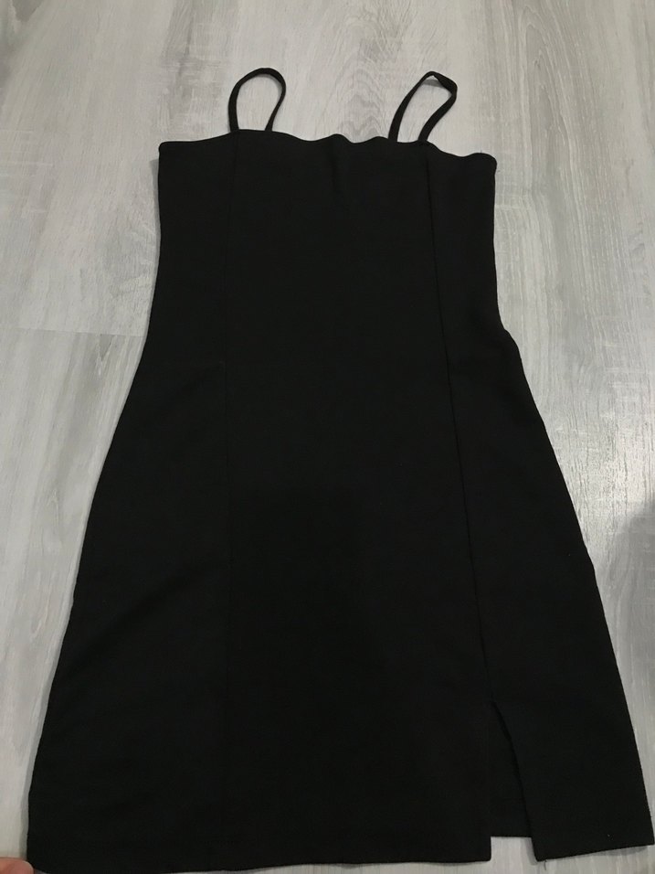 Siyah, straplez ve askılı detaylara sahip, drapeli ve vücuda oturan midi uzunlukta gotik tarzda şık bir elbise.