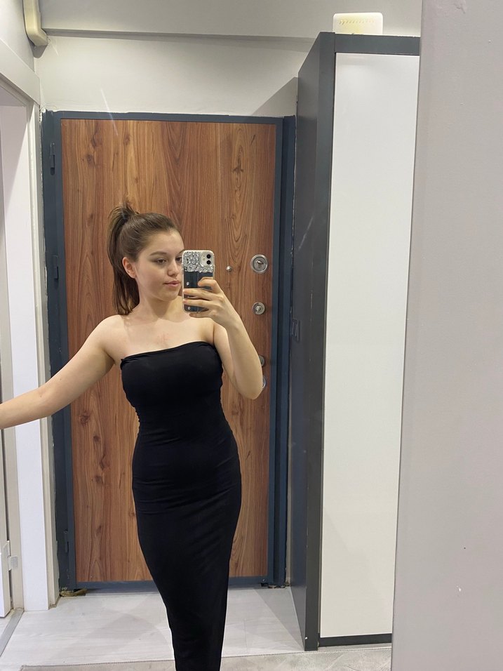 Siyah Straplez Midi Kadın Elbise