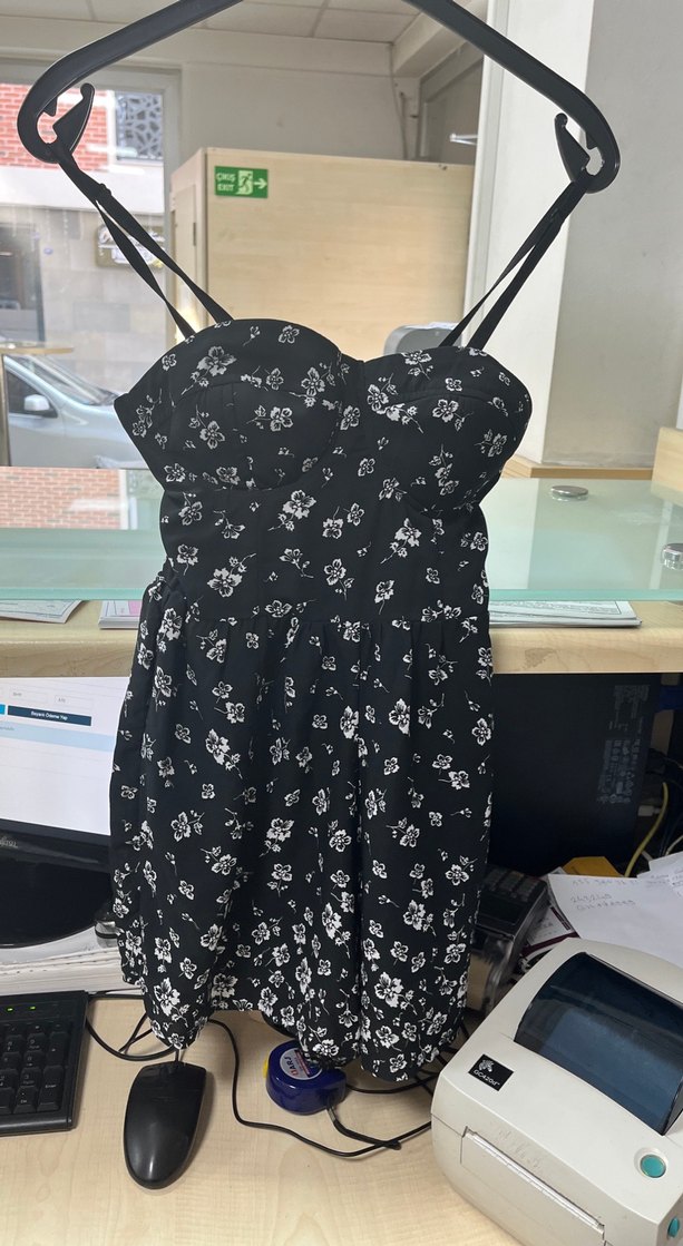 Siyah straplez, ince askılı, baskılı dantel vücuda oturan midi uzunlukta elbise. Günlük kullanıma uygun cesur goth tarzında.şort etek tarzı