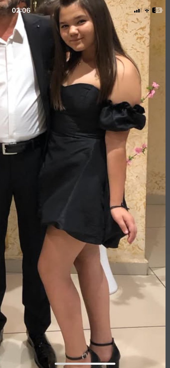 1 kez giyildi sadece. Siyah, straplez, beli oturan mini elbise. dikkat çeker. Cesur ve gotik tarzda romantik akşamlar için uygundur.
