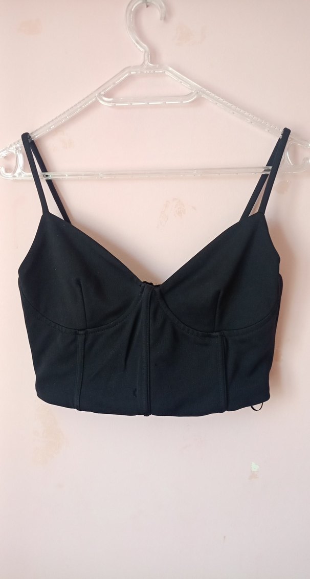 Siyah, straplez, ince askılı, fermuarlı, dar kesim mini bustiyerdir. Gotik ve minimalist tarzda, cesur bir görünüme sahiptir. Sentetik kumaştan üretilmiştir.