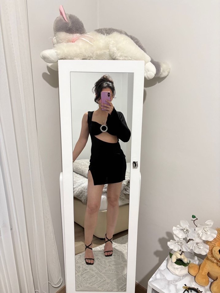 Siyah Straplez Mini Elbise