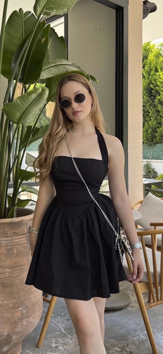 Siyah straplez mini elbise, saten parlak kumaştan, strappy kollu ve vücuda oturan kesimle cesur, zahmetsiz şıklık sunar. Parti için ideal. Bir kez giydim sorunsuz