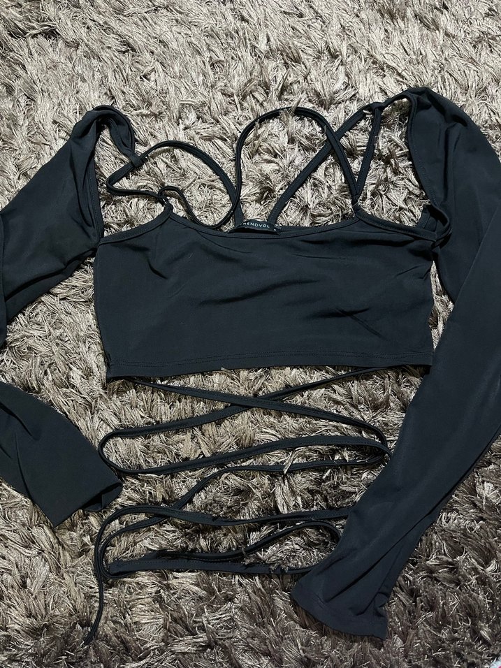 Siyah mini crop ust tarafi kucuk olan kadinlar icin gayet uygundur