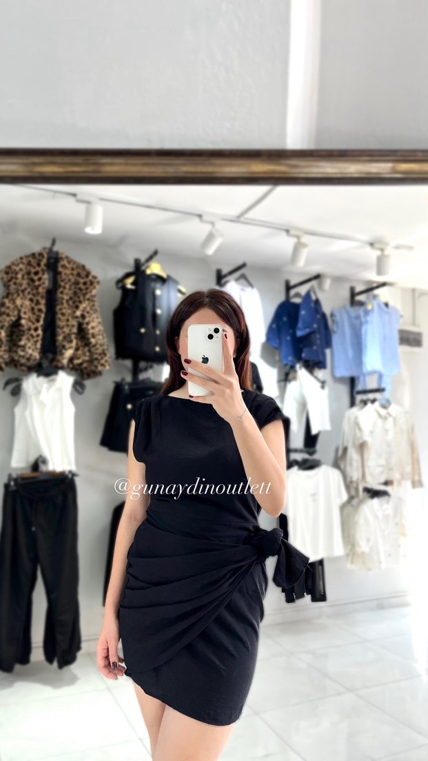 Siyah straplez mini kalem elbise, saten dokulu baskılı kumaş ve kolsuz tasarımıyla çağdaş ofis şıklığı sunar. ✨ S-M Beden mevcut ⭐️Etiketli ☺️Belden kuşaklı ayrobin kumaş ütü gerektirmez tam kalıptırmarka temsili