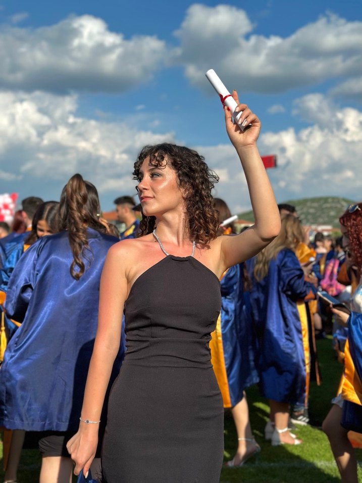 Siyah, straplez yakalı ve parlak batik desenli, püskül detaylı, vücuda oturan midi mezuniyet elbisesi. Sadece 1 kez giyindim . Hiçbir kusuru yoktur .