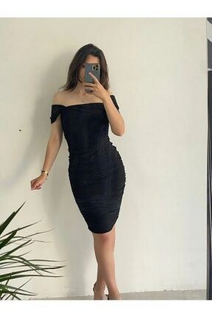 Siyah Straplez Mini Şık Kadın Elbise