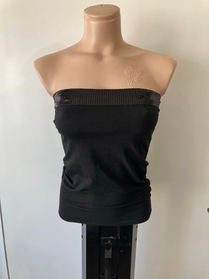 Siyah Payetli Straplez Üst , S / M beden uyumlu, ayrıca ölçülerini fotoğrafta paylaşın lütfen ölçülerinizi dikkate alarak satın al yapınız. Herhangi bir defosu yok, temizdir.
