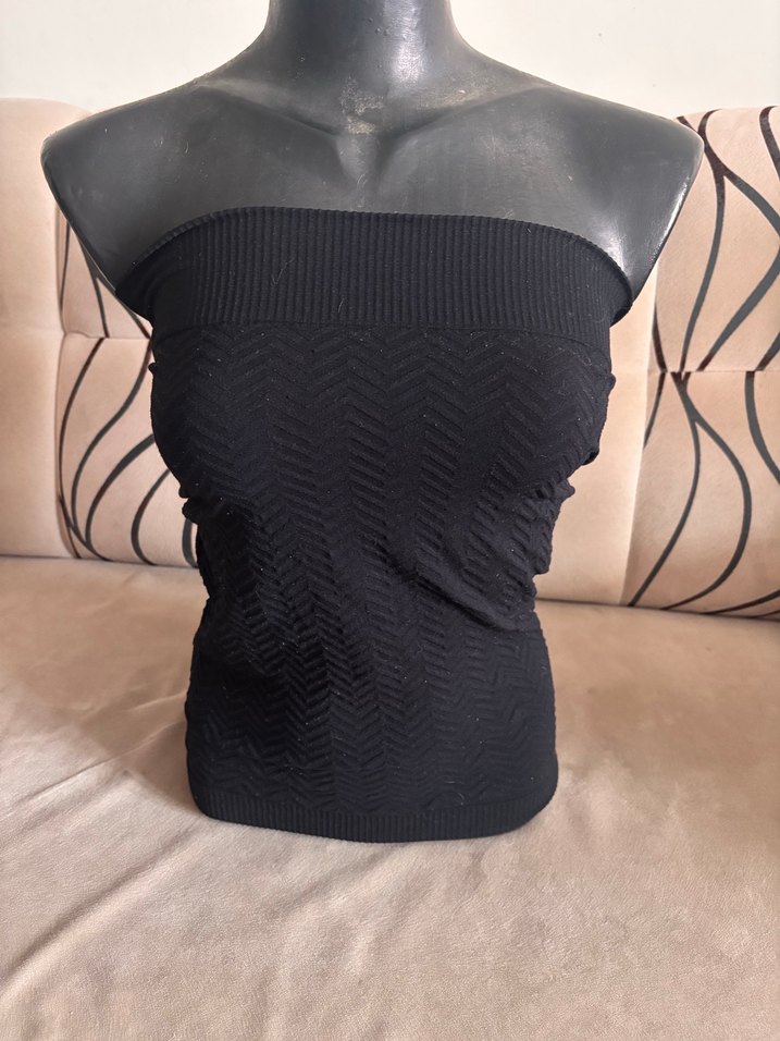 Siyah straplez, örgü dokulu ve ince askılı, kısa kesim bir büstiyerdir. Minimalist tarzıyla günlük kullanıma uygundur. S-m