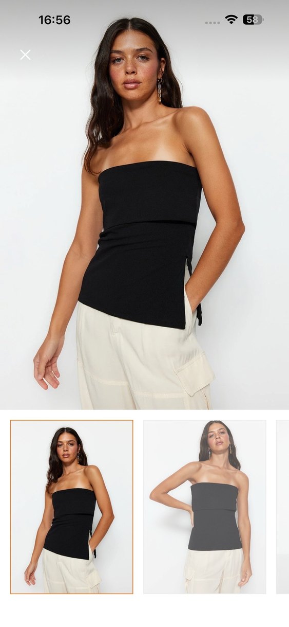 Siyah Straplez Pamuklu Bluz