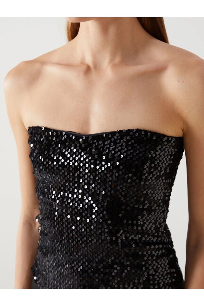 Siyah Straplez Payetli Pullu Mini büstiyer