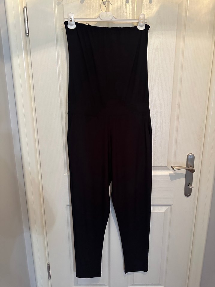 Siyah, straplez ve kolsuz tulum, ceplidir. Standart bedendir her bedene uyumludur. Hiçbir sorunu yoktur