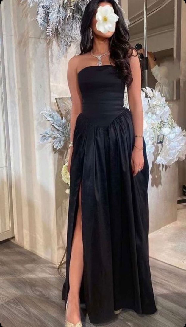 Siyah Straplez Uzun Abiye Elbise