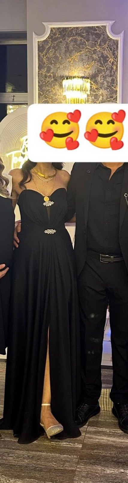 Siyah, straplez kalp yaka, . Düğünler için uygun, vücuda oturan kesim.önden yırtmaçlı 1 kere giyildi