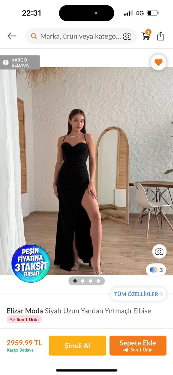 Siyah straplez, drapeli ve saten dokulu uzun elbise, ince askılı ve yırtmaçlı tasarımıyla romantik gece için uygun.