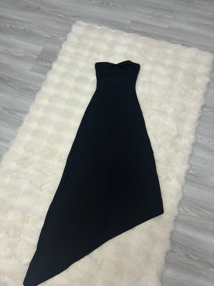 straplez, siyah ve uzun boy elbise. 2 kere giyildi.