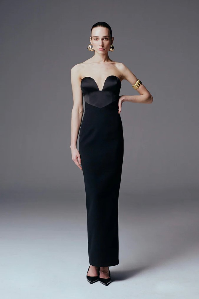 Siyah Straplez Uzun Elbise