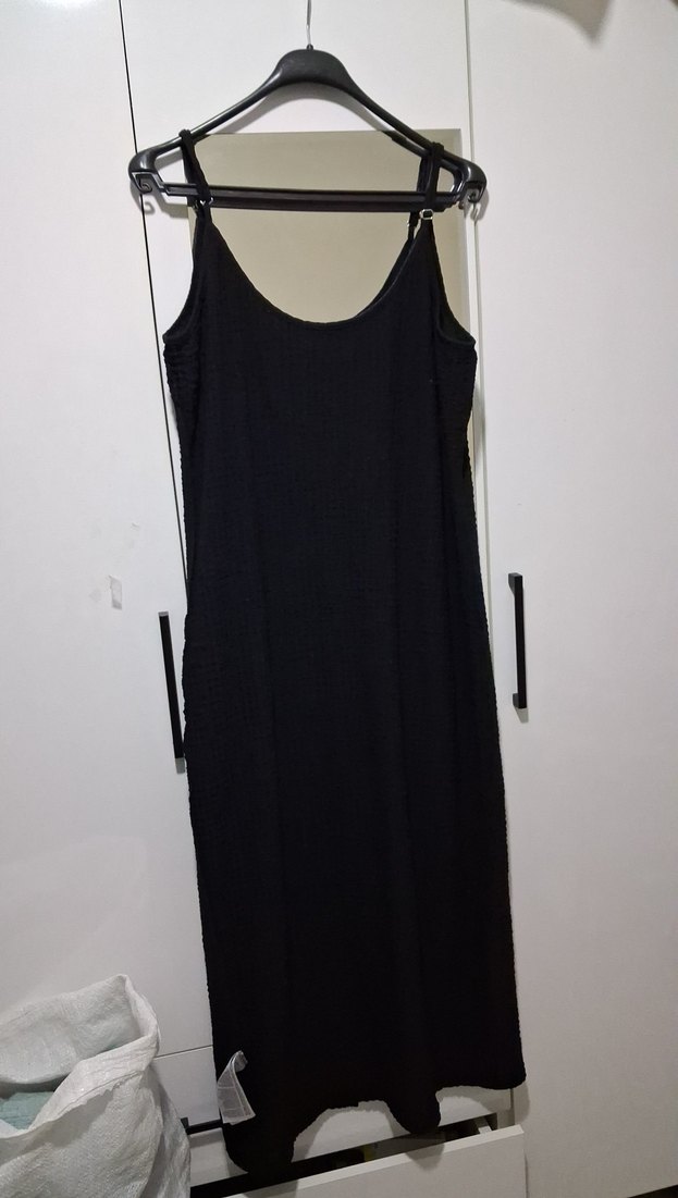 Siyah, straplez, uzun ve kolsuz elbise, sentetik yumuşak kumaştan, minimalist ve şık sokak stili için uygundur. Lcw markalidir