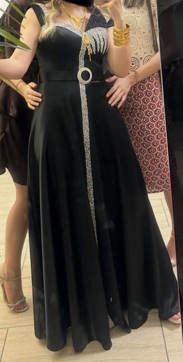 Siyah straplez, askılı uzun abiye elbise, dar kesim ve işlemeli desenlere sahip. Drapeli detayları ve dikey süslemeleriyle gotik düğünler için uygun. Kuru temizleme yapıldı. 1 kere giyildi.