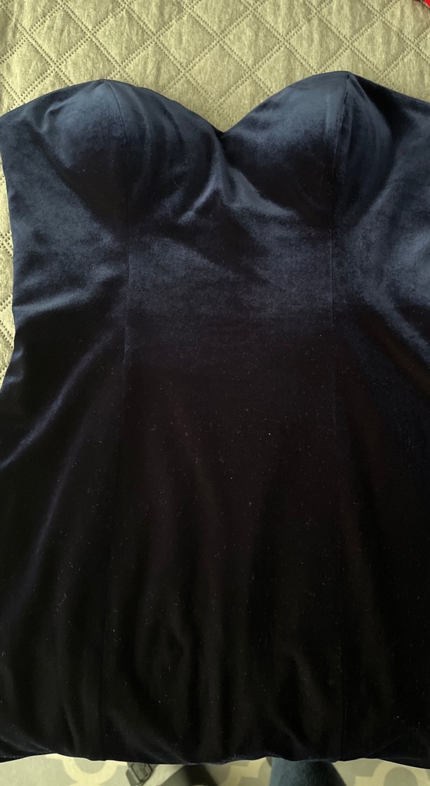 Drapeli, straplez ve uzun lacivert elbise, Kolsuz ve vücuda oturan kesimiyle özel günleriniz için uygundur sıfır ayarında denilebilir