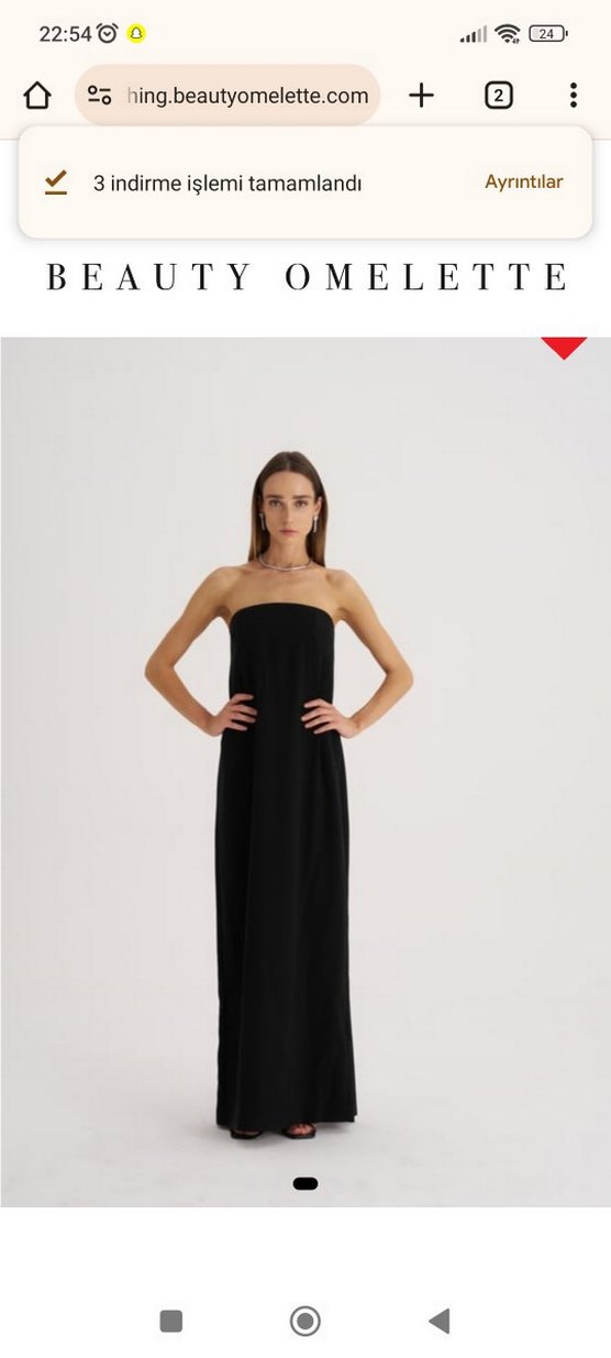 Siyah straplez uzun elbise, ipeksi kumaş ve normal kesime sahip. Kolsuz ve desensiz tasarımıyla çağdaş ve minimalist bir görünüm sunar. Romantik akşamlar için ideal. Marka: Beauty Omelette. ✨