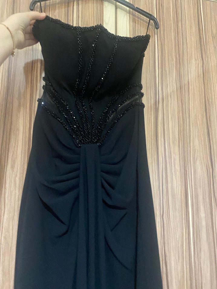Siyah Straplez Uzun Nakışlı Abiye Elbise sadece 1 kere giyildi