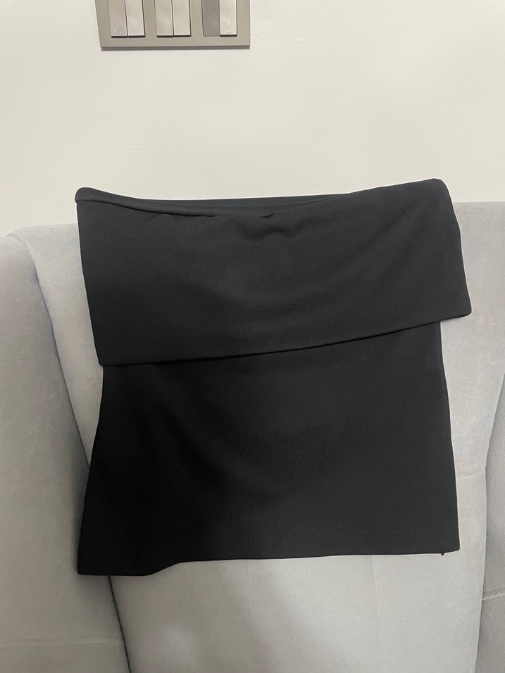 Siyah straplez yaka yandan fermuarlı krep örme bluz