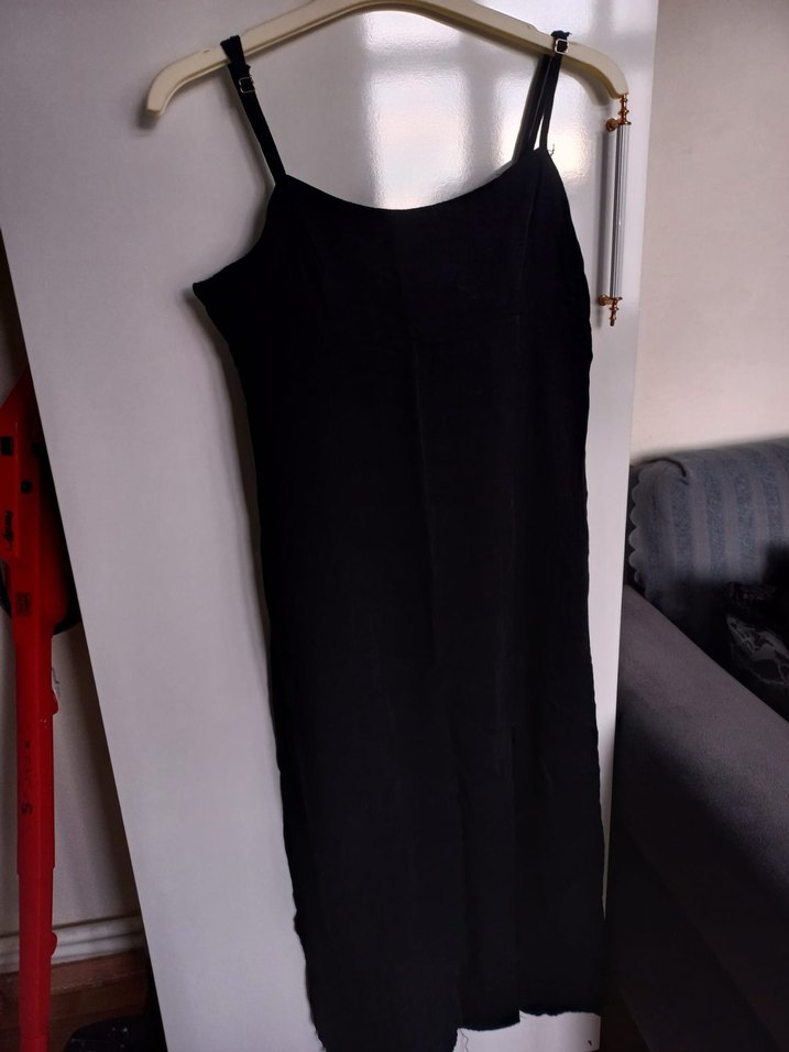 Siyah, straplez ve kolsuz tasarıma sahip, midi boyda, vücuda oturan çok rıhat bi jile