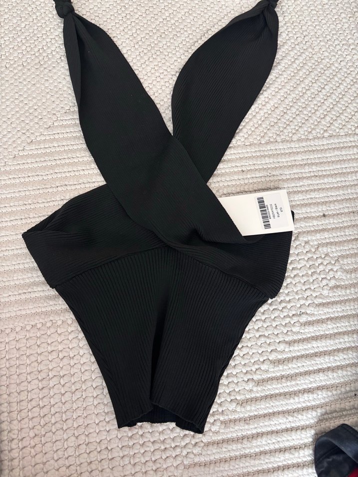 Siyah Strappy Fitilli Mini crop boyundan bağlamalı