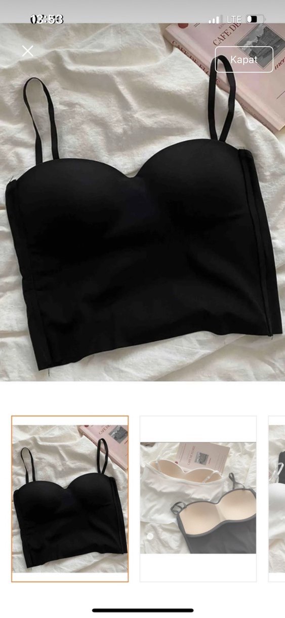 Siyah, tek renk, dar kesim bustiyer, kayık yaka ve ince askılı. Pürüzsüz sentetik kumaştan, minimalist gotik tarzda, günlük kullanım için şık ve rahat.