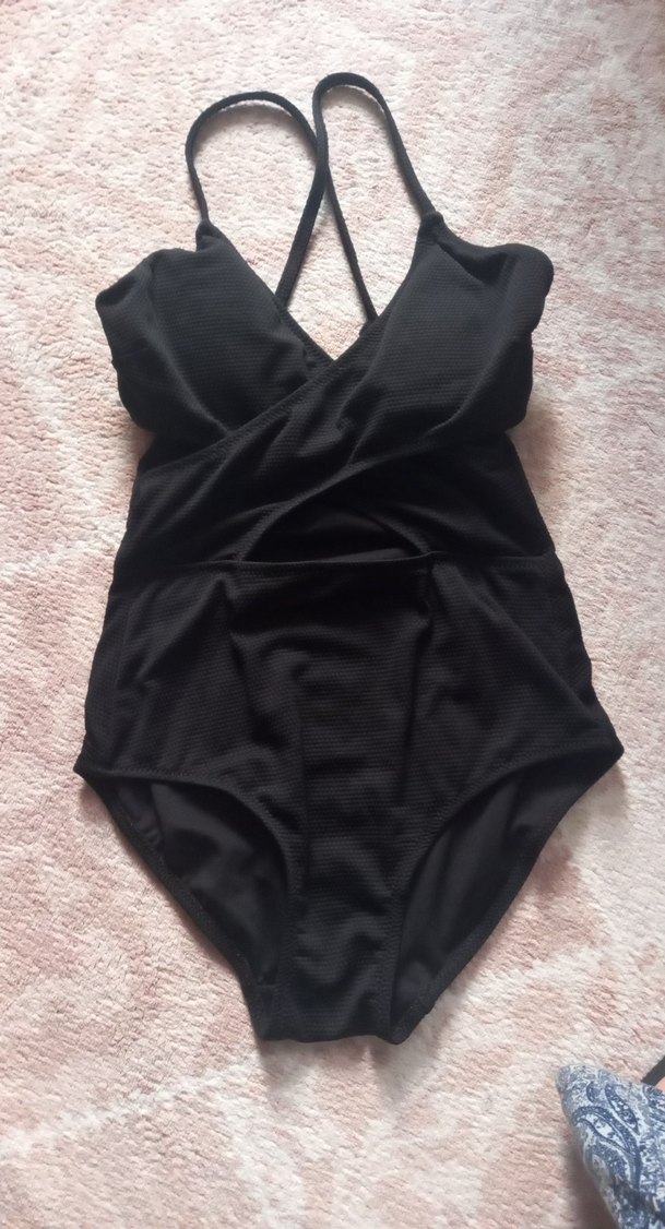 Siyah, strappy detaylı, midi uzunlukta ve vücuda oturan bu mayo, cesur ve minimalist gotik tarz sunar. ️