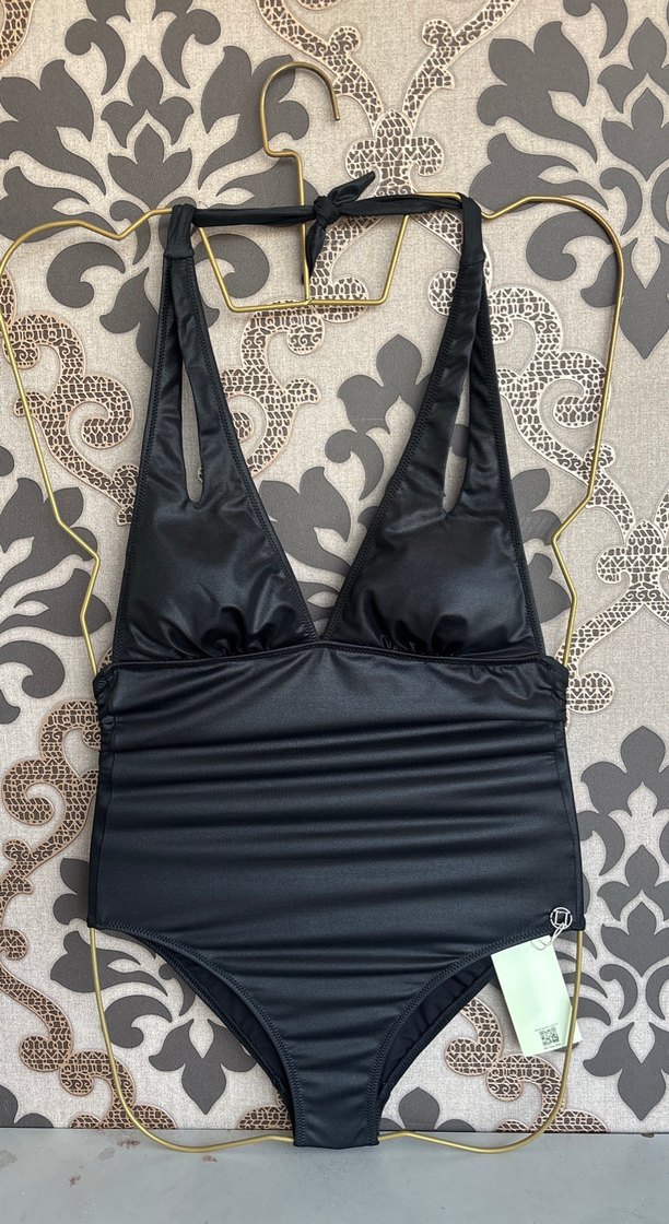 Siyah, strappy askılı, vücuda oturan kadın mayo. Midi boy ve modern tasarımıyla plajda zahmetsiz şıklık sunar. ️