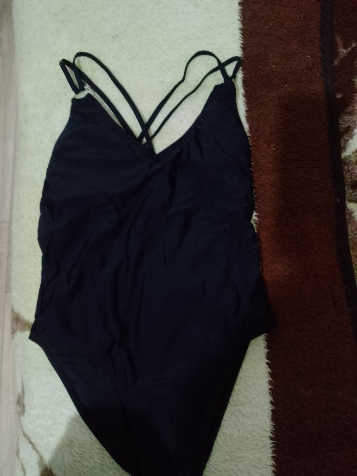 Siyah renkli, strappy askılı ve vücuda oturan kesime sahip kadın mayosu, midi boyda ve gündelik kullanım için uygundur.