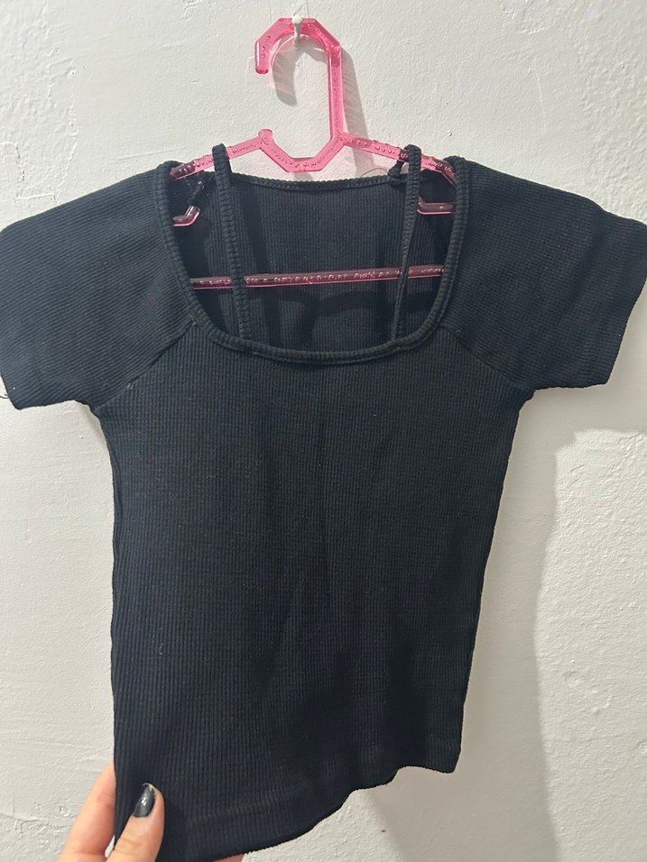 Siyah, strappy kollu ve kayık yaka kadın bluz. Düz, midi boyda ve sentetik yumuşak kumaştan, şık ve trend bir görünüm sunar.
