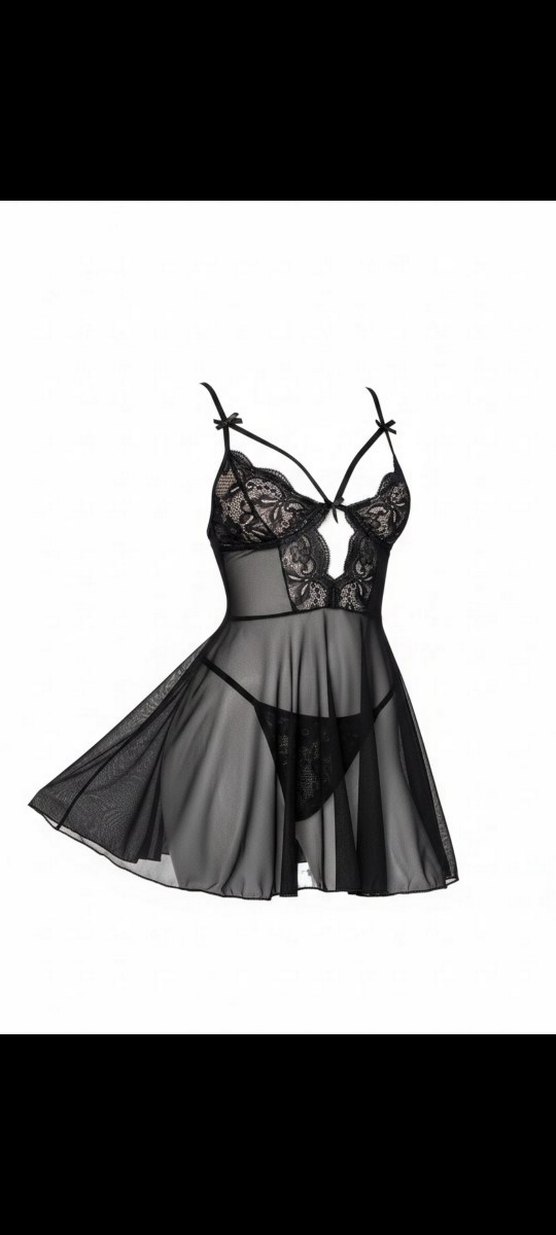 siyah ve fitted kesim midi gecelik, strappy askılarla gotik ve bohem tarzları birleştiriyor. Şeffaf kumaşı zarif bir dokunuş katıyor.