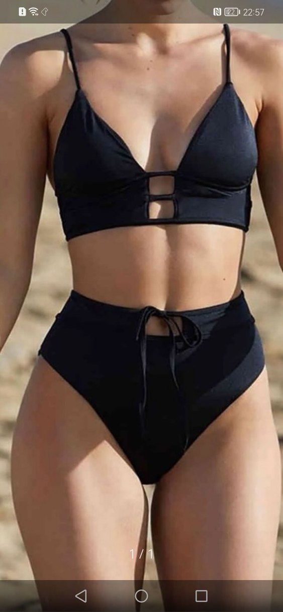 Siyah renkli, kısa mini boy, strappy detaylı, vücuda oturan bikini takımı. Cesur ve zahmetsiz şıklık sunar, plaj için uygundur. ️